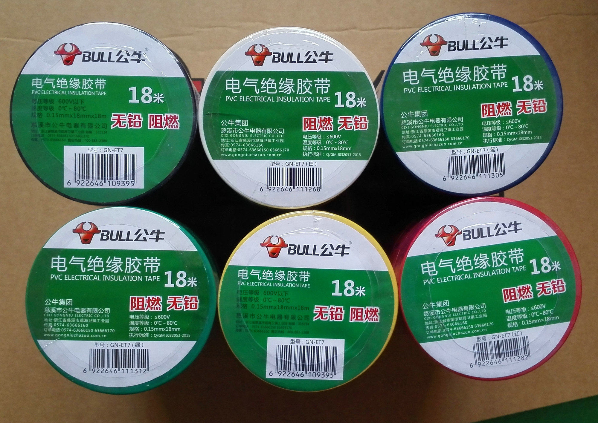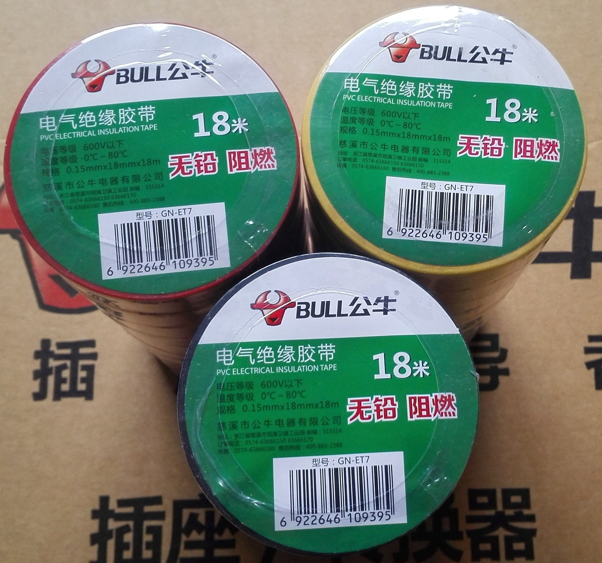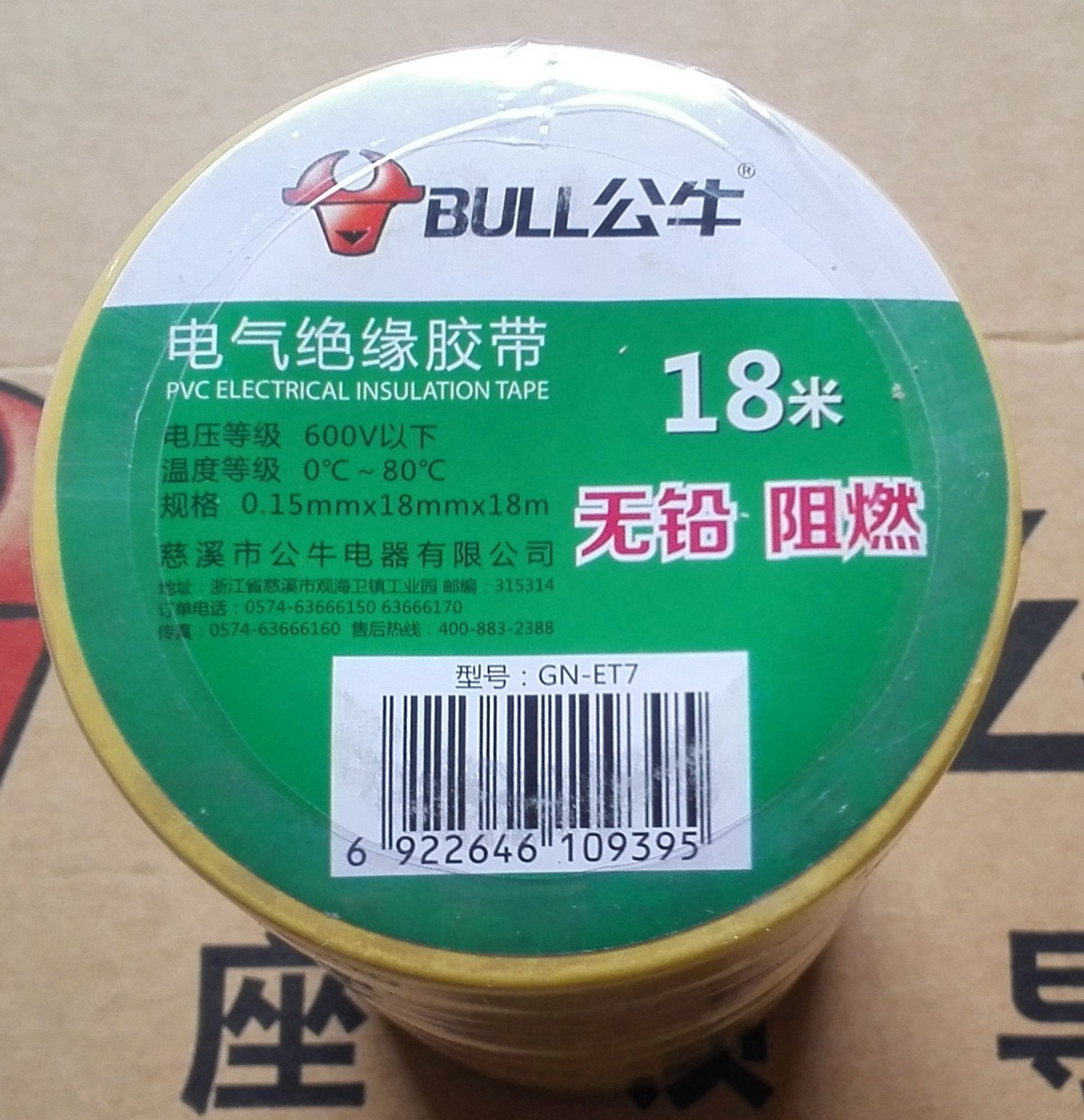 18 m bull pvc electrician adhesive tape insulation electrical wire rubberized fabric flame retardant black and white blue green yellow red GN-ET7