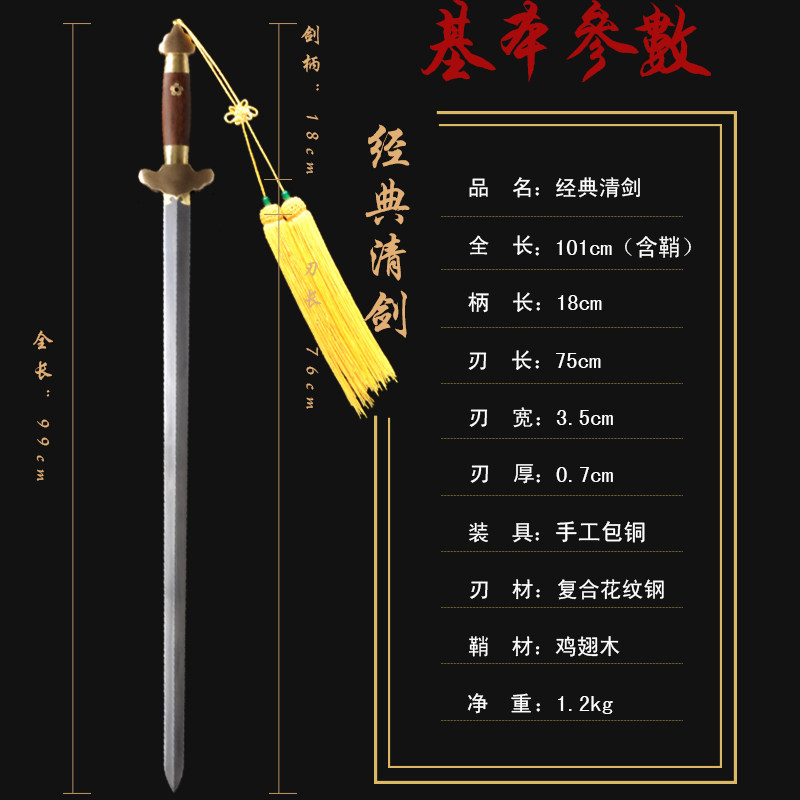 Longquan Puqqi traditional Qingqing steel hand - wrapped copper long - plate hard sword tai chi has not been blacked