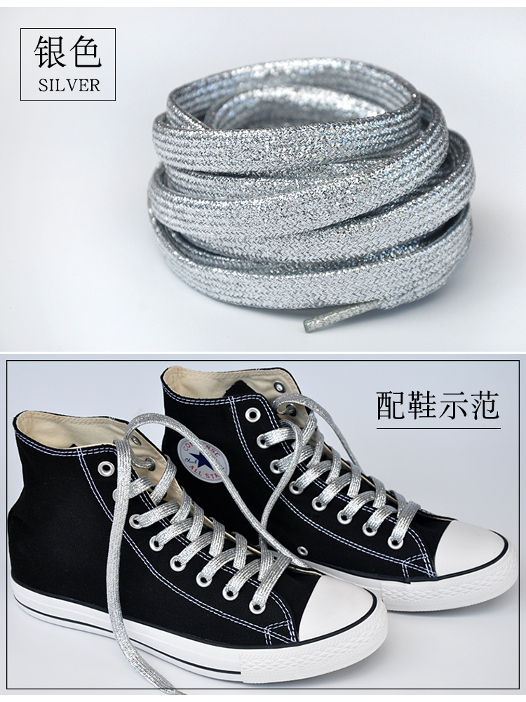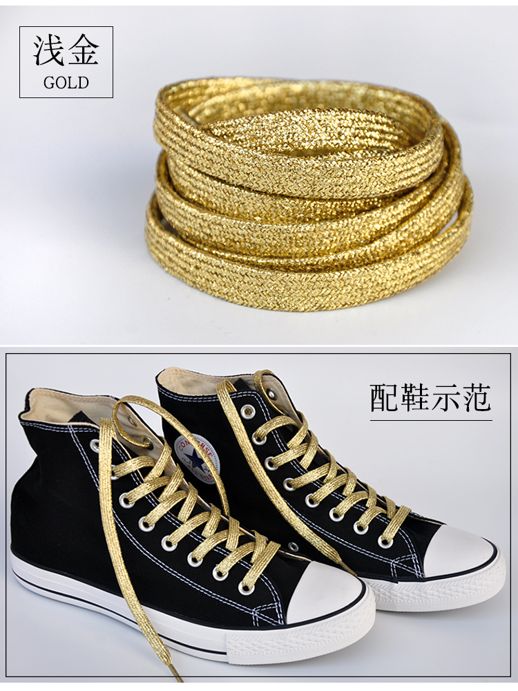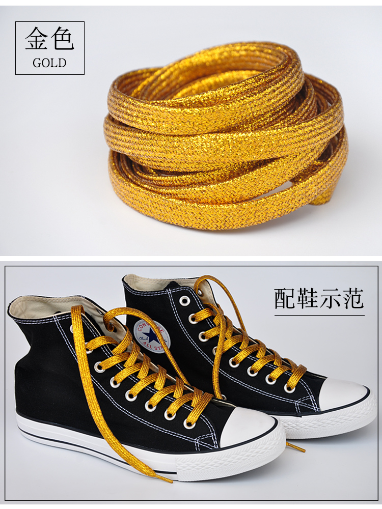 Local tyrant gold bright silver bronze metal flash wire male and female performance flat trend personality sports shoe laces