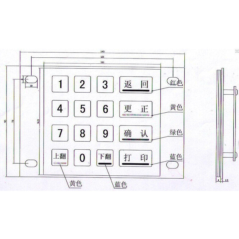 Metal stainless steel industrial numeric keypad Embedded anti-violence giant array keyboard ATM metal keyboard