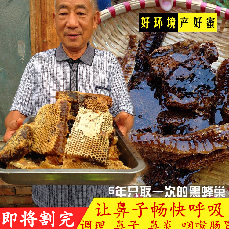 5-year-old black honeycomb honey Qinling 5-year-old earth honeycomb honey Pure natural farm produce and sell wild old honeycomb honey