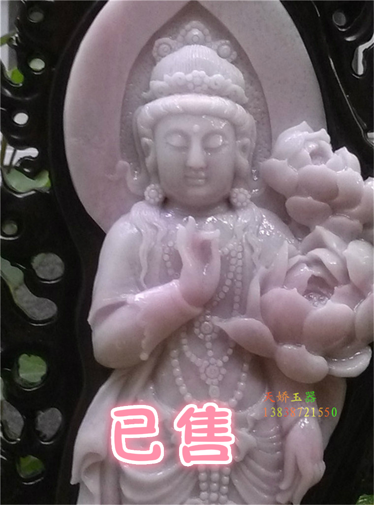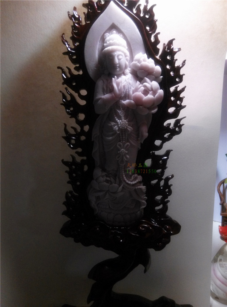 The Natural Jade Unique Mountain Jade Jade Emerald Class Hibiscus Red Station Guanyin Swing Piece Distribution Base Packaging Box