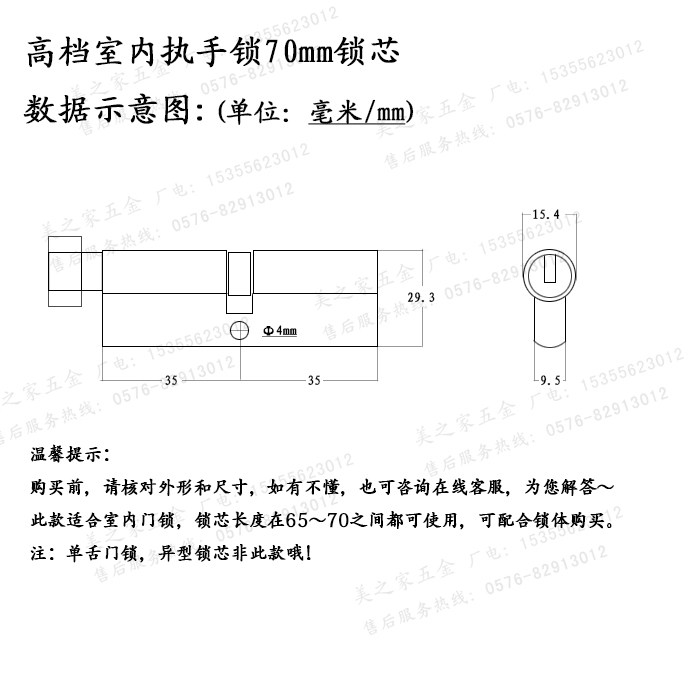 High-end room door lock core small gourd pure copper lock core room door wooden door plate hand lock 70mm fit 5 to hold copper key