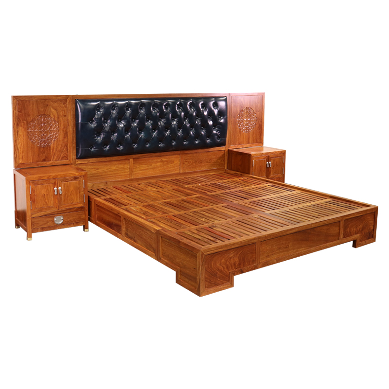 Chinese solid wood furniture hedgehog red sandalwood double bed full solid wood big bed new Chinese mahogany bed rosewood storage bed