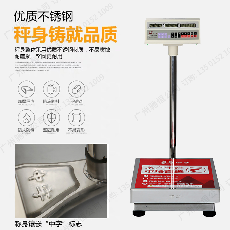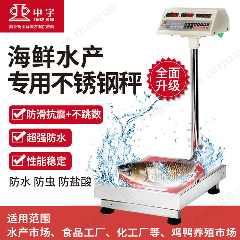 Zhongzi brand ZTE electronic scale 100kg stainless steel aquatic product scale 150kg waterproof scale 300kg seafood scale