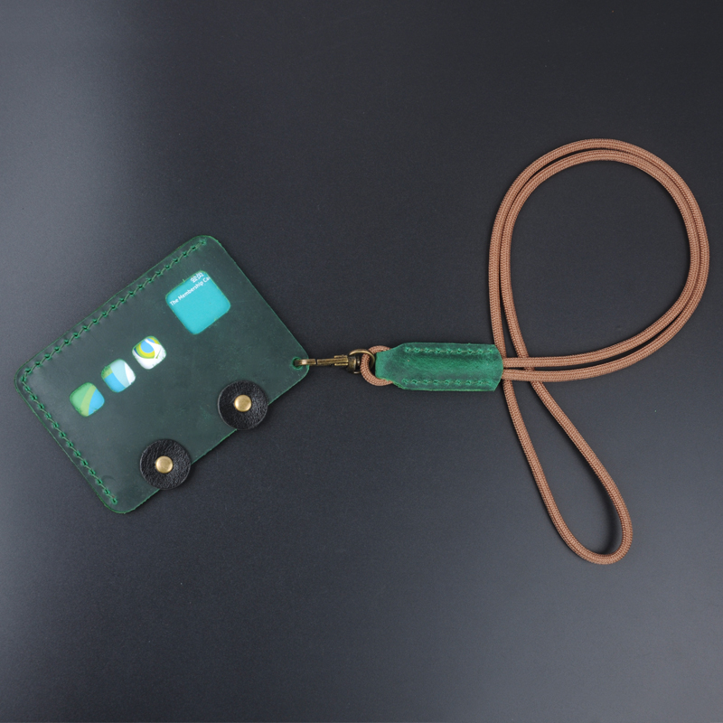 The first layer of cowhide pure hand-sewn hanging neck wrist creative card bag access control card sleeve bus
