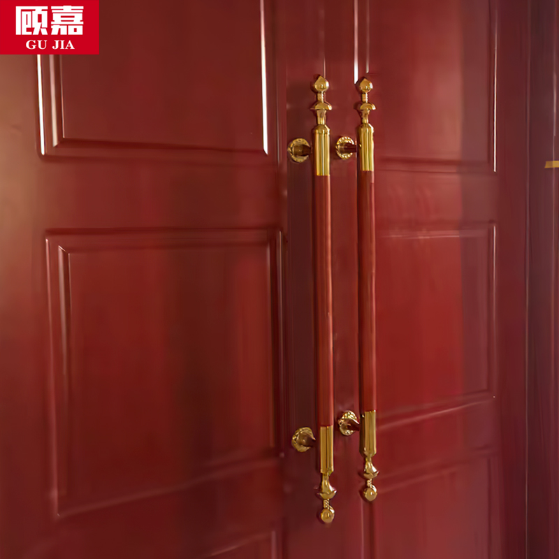 Glass door handle solid wooden antique pear wood Hotel villa high - end door peach and door handle handle