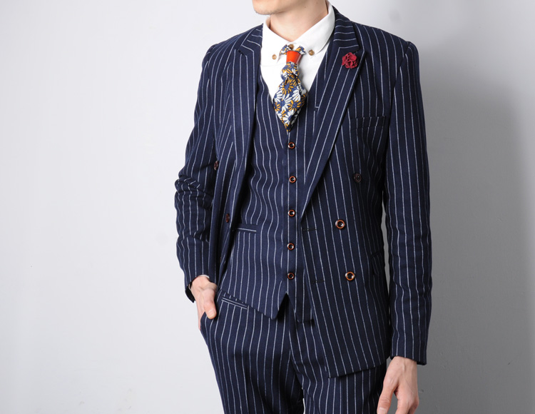 New film building photo dress striped men England dress suit vest 3 piece set stage hosted B8