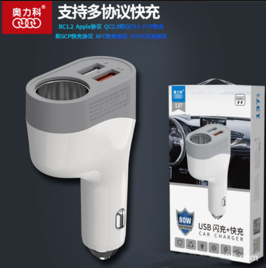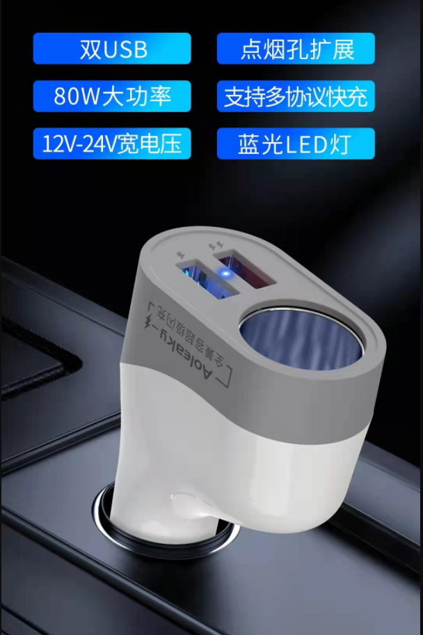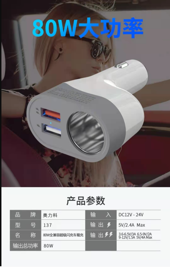 137 80W Car Charger Recorder Car Charger Conversion Car Charger Dual USB Cigarette Lighter Car Charger