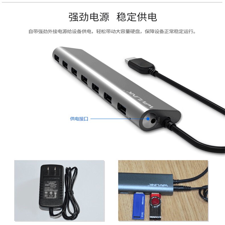 usb3 0 extension cable seven-port hub Rui because of high-speed expansion 1 drag 7 with power free drive support for large hard drives