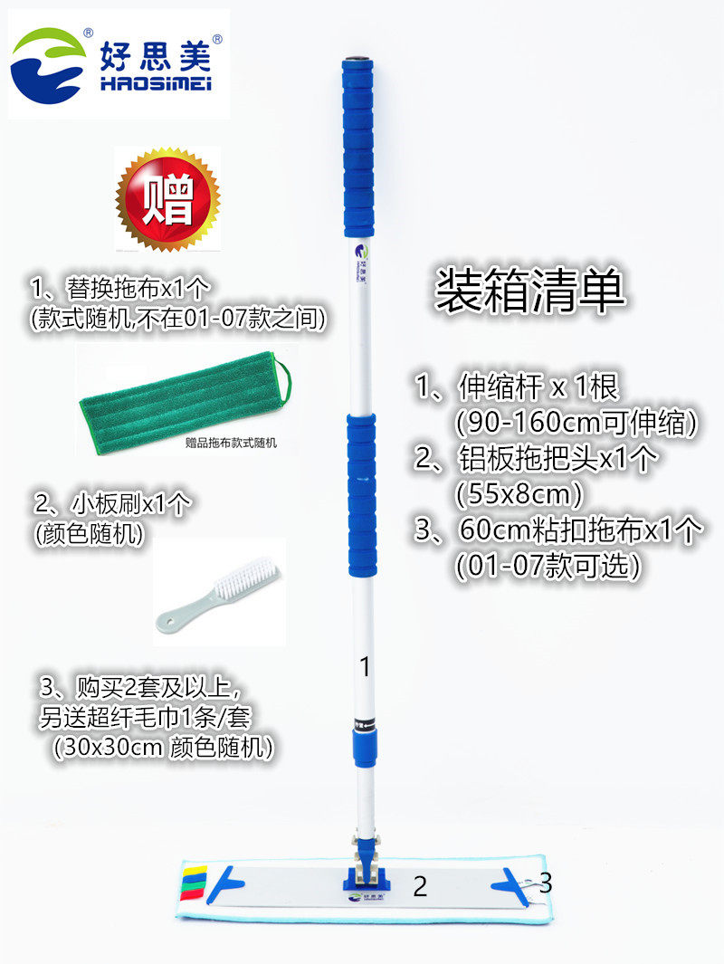 Haosimei large telescopic rod velcro microfiber mop Wooden floor mop Aluminum plate flat push dust mop