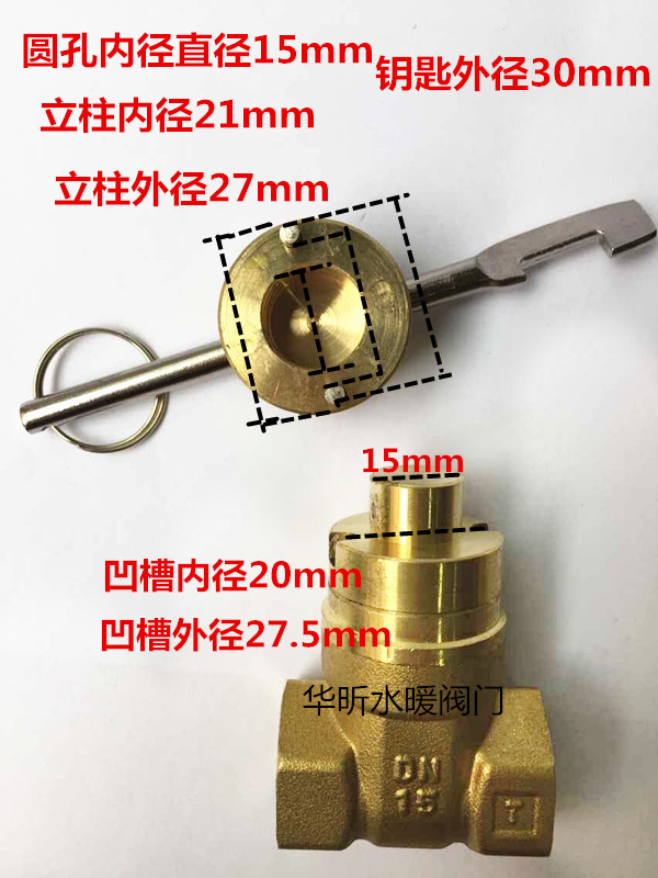 Sumin magnetic lock with lock copper gate valve 4 points DN15 water meter front copper valve with lock gate valve magnetic key