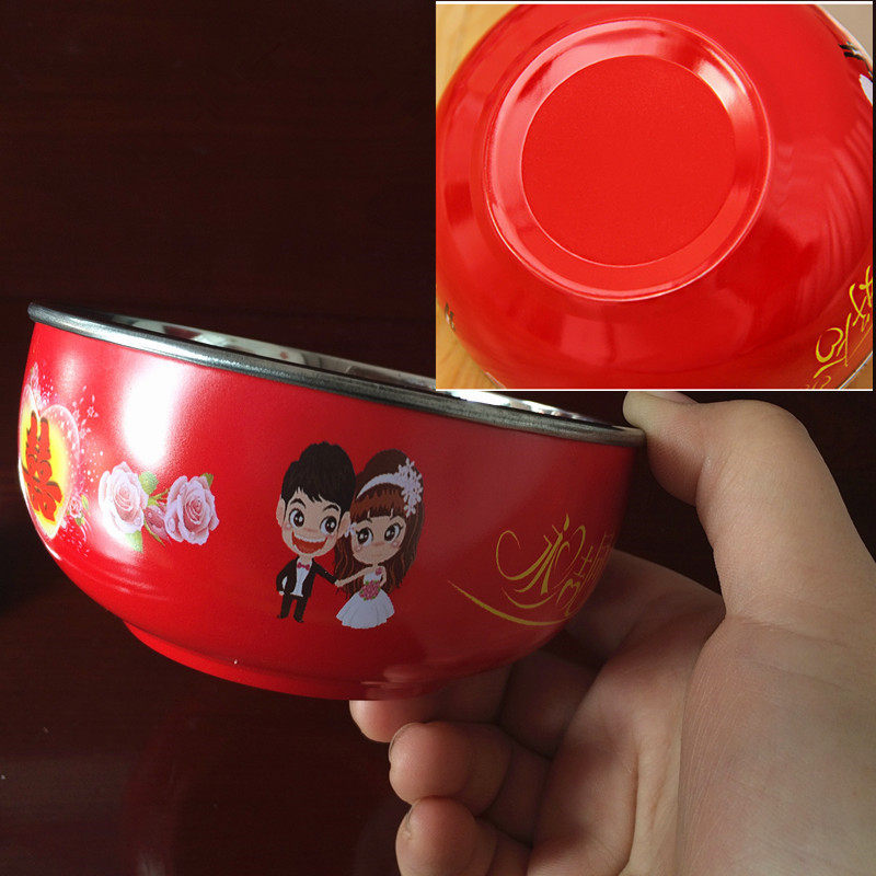 Wedding Celebration Ceramic Dragon Phoenix Bowl Festive Red Bowl Happy Cup Happy Chopsticks Stainless Steel Suit Wedding Gift Bowls Chopsticks Lovers