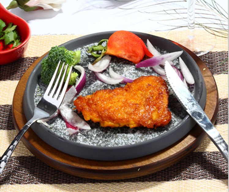 Sanchong Korean slate burn round stone pan natural anti-cracking stone pan stone baking pan stone frying pan wheat rice burning steak tray