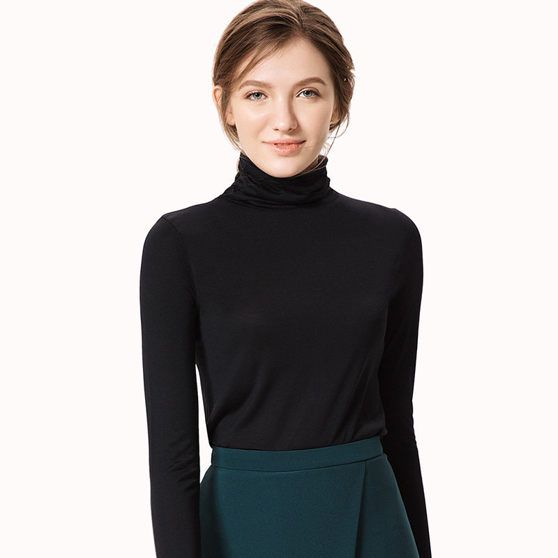 Golden three towers autumn and winter new silk thin basic bottoming shirt women breathable slim high collar solid color long sleeve warm clothing