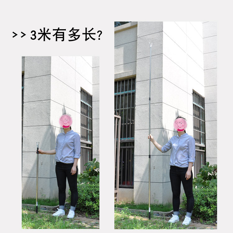 Extended 3 meters stainless steel clothes fork support rod three-section telescopic clothes drying telescopic rod Aluminum alloy fork curtain pick rod