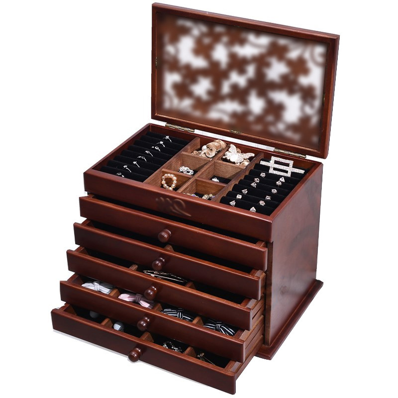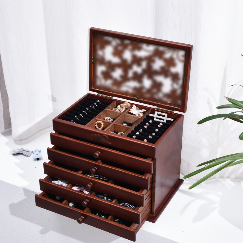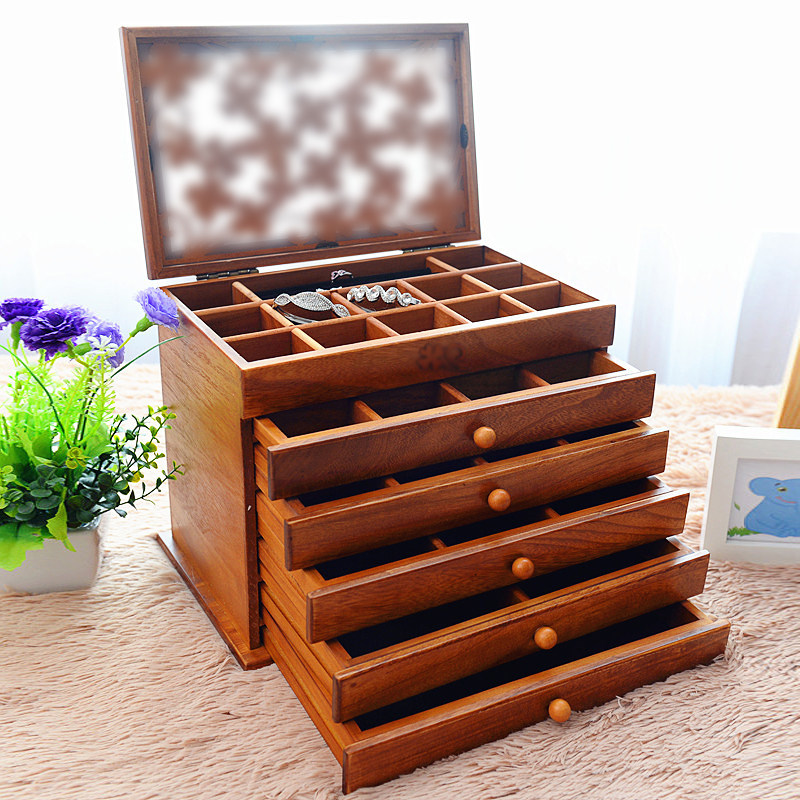 Four-leaf clover princess jewelry box wooden solid wood retro Chinese jewelry storage box wooden large-capacity multi-layer gift