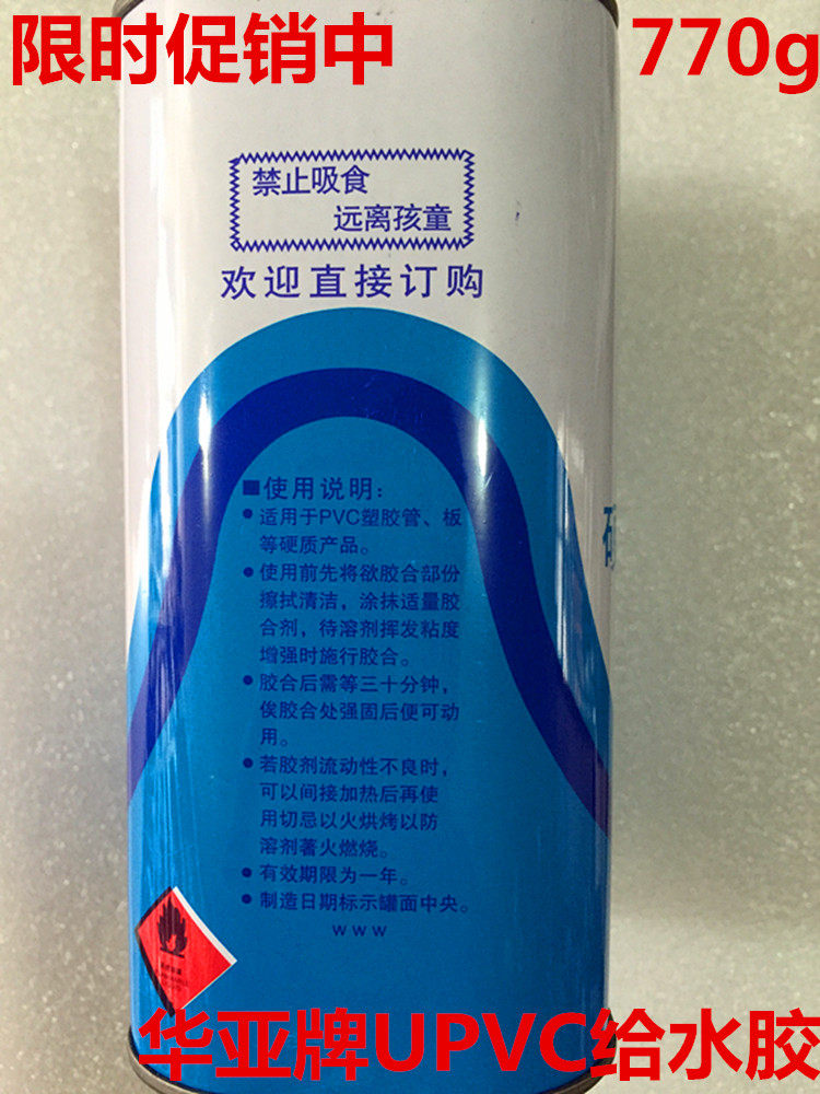 Huaya brand UPVC water gum upvc adhesive UPVC pipe adhesive 770g bottles of large bottle