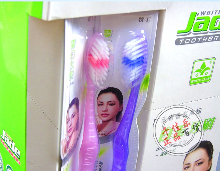 White jade ultra - fine hair antibacterial toothbrush adult Korea double - layer teeth whitening and bleeding protection