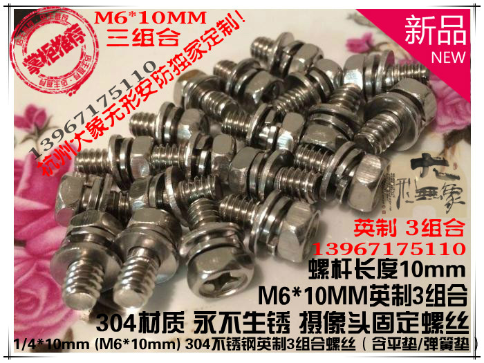 Special Hikvision camera head 304 stainless steel inch screw three combination monitoring British standard M6*12MM