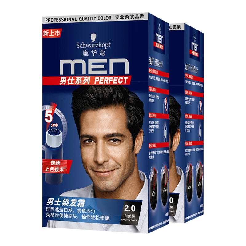 Schwarzkopf Men's Plant Hair Dye Ammonia-free concealer White Hair dye cream Own at home Hair dye Cream Natural Black 2 boxes