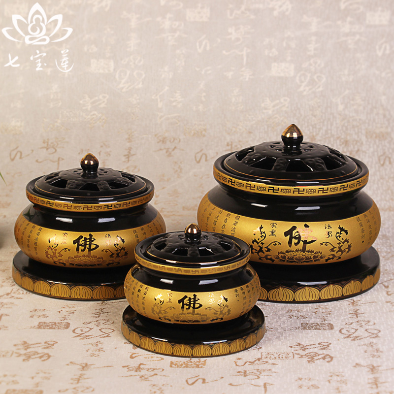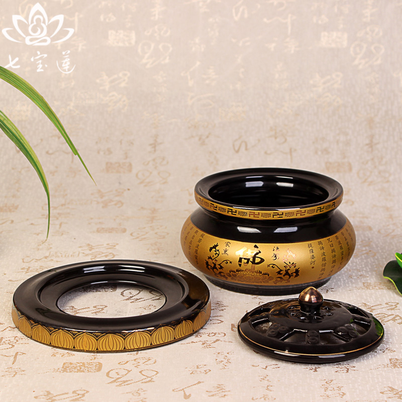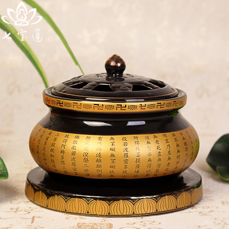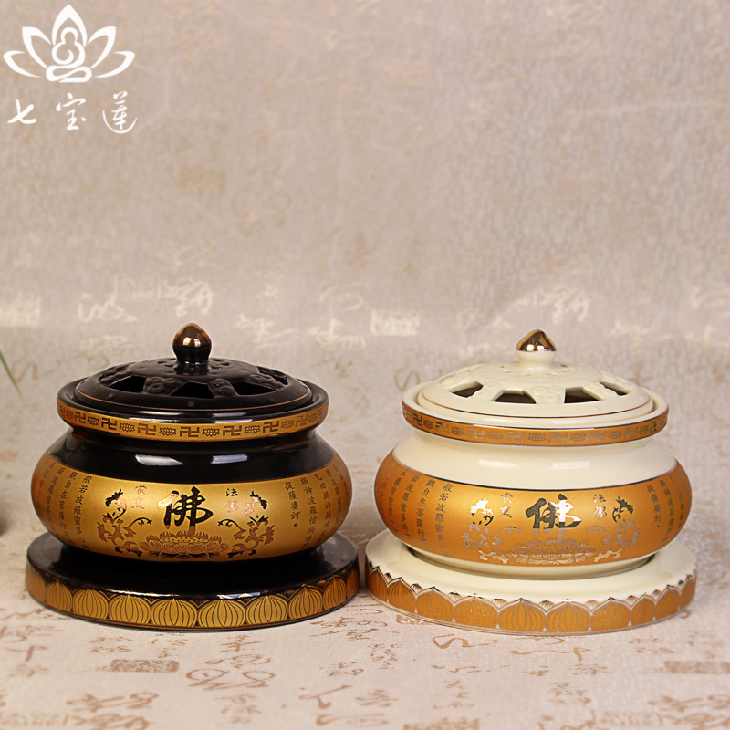 Yuantong Buddha Ceramic Buddha word Heart Sutra Two-color aroma furnace Sandalwood ring incense burner Buddhist Incense Supplies Net incense burner