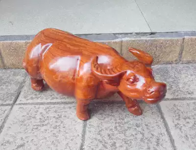 Redwood Crafts Rosewood Zodiac Niu Zhaocai Niu House Decoration Solid Wood Cow Wood Carving Town House Feng Shui Decoration