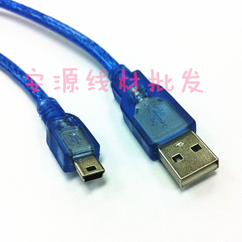 Transparent blue USB to 5pin T-head T-port mini mini 5p 2 0 data cable 1 5 3 5 meters