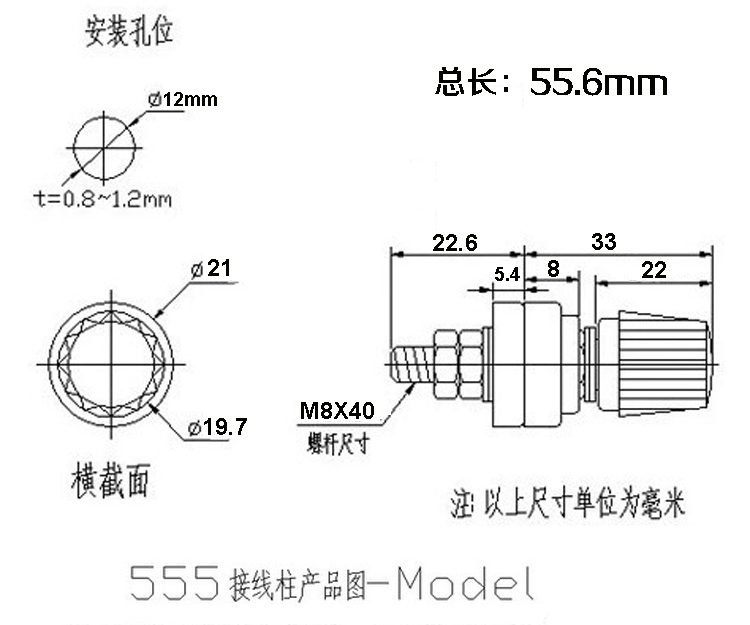 200A high current high power pure copper 555 terminal 8mm transformer inverter electric welding machine terminal block M8
