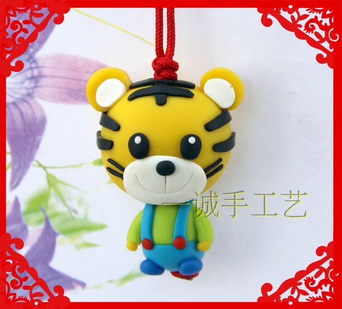 Soft pottery mobile phone lanyard handmade pottery jewelry large pendant Jinzhou manufacturers source Tiger zodiac tiger