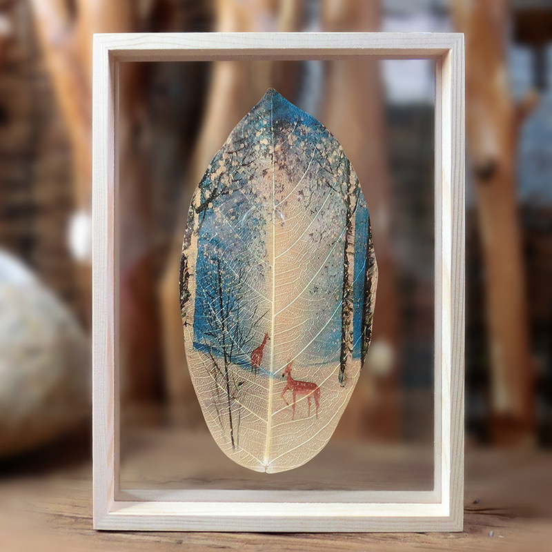 Spring, summer, autumn and winter living room study decorative painting leaf specimen painting lotus real leaf table hanging painting new year gift