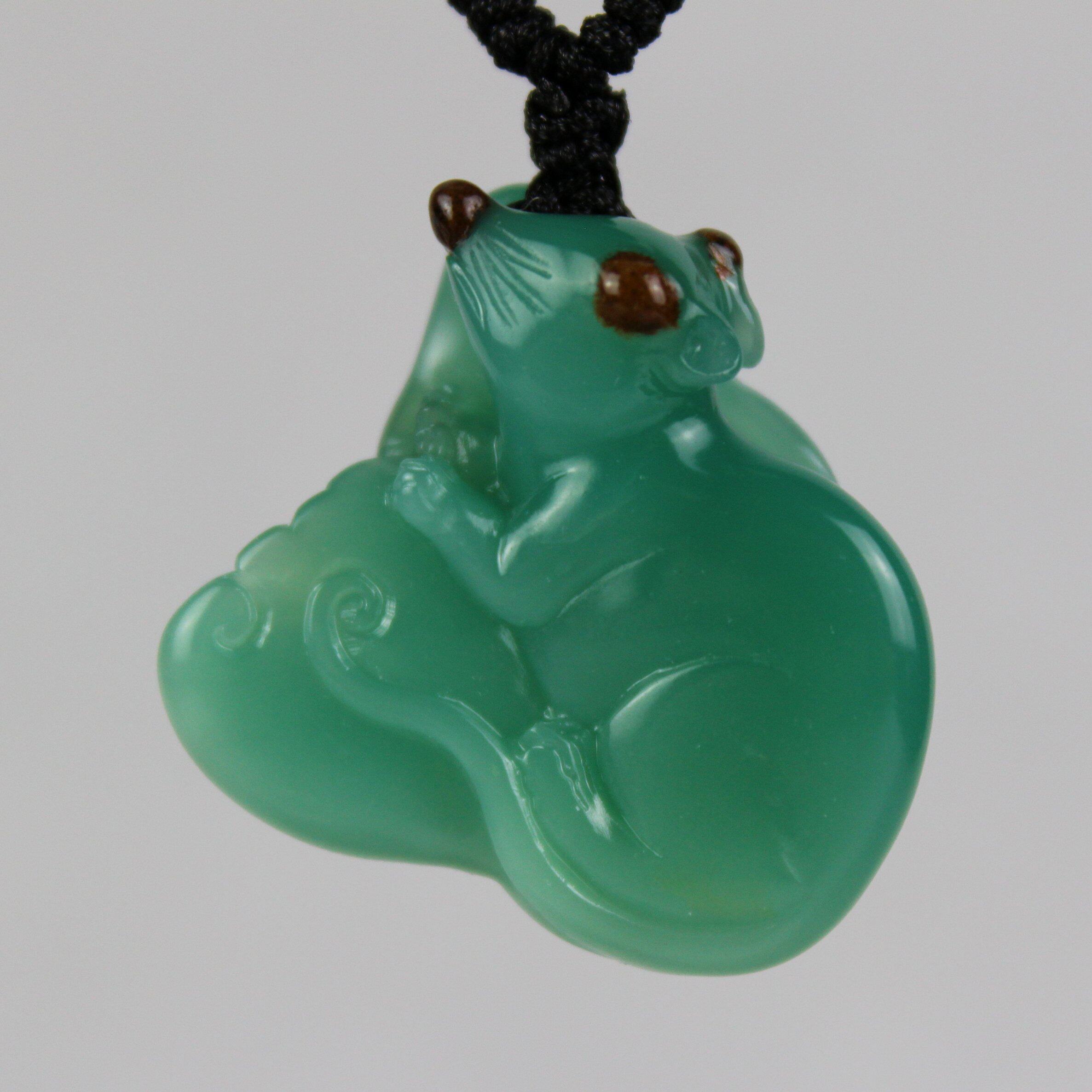 Count me beautiful and beautiful mouse Sichuan Ya'an jade green pendant Qiao carved fine natural jade necklace