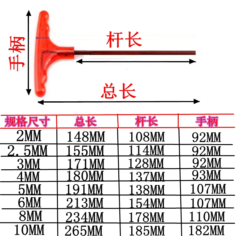 S2 with shank T type inner hexagon wrench Ting word lengthened screwdriver T shaped wrench 6 angle hexagonal hexagon wrench