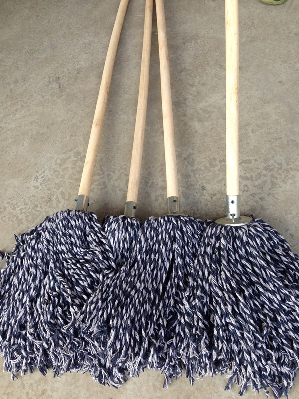 Large IRON HEAD COTTON THREAD OLD MOP LONG POLE SUCTION MOP WORKSHOP PLANT PROPERTY LAO SCHOOL MOP