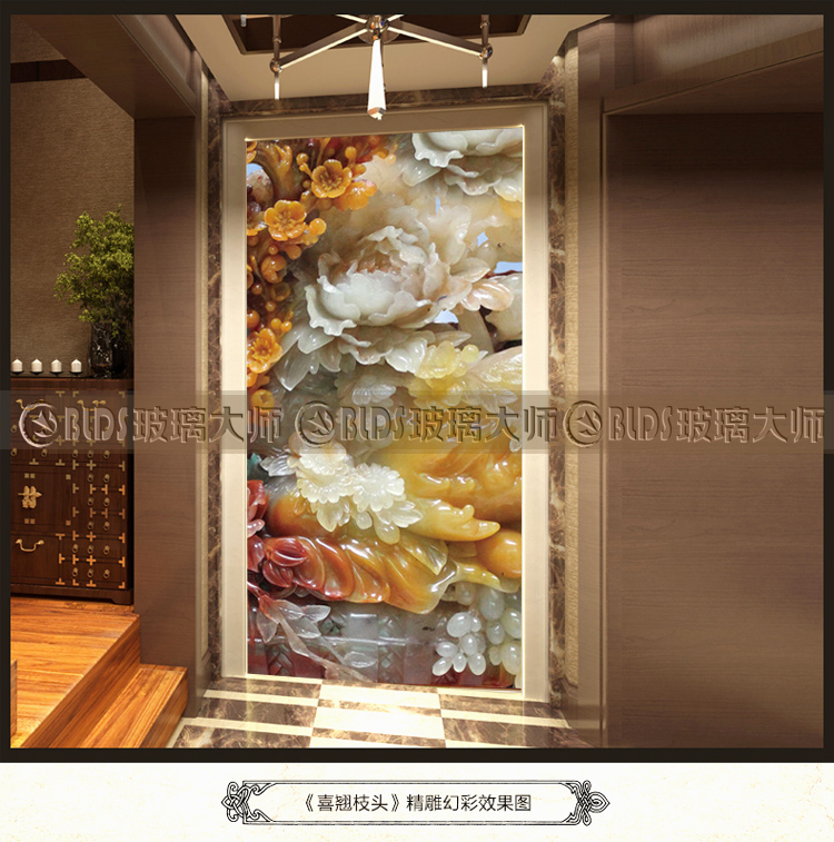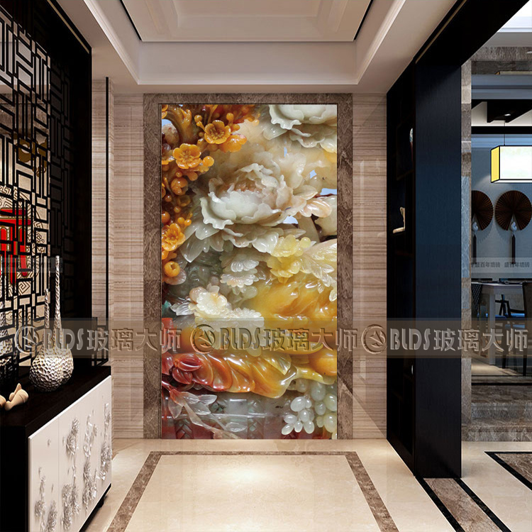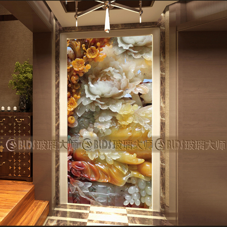 Guangzhou 3D three-dimensional art glass carving craft screen porch partition TV background wall imitation jade carving flowers