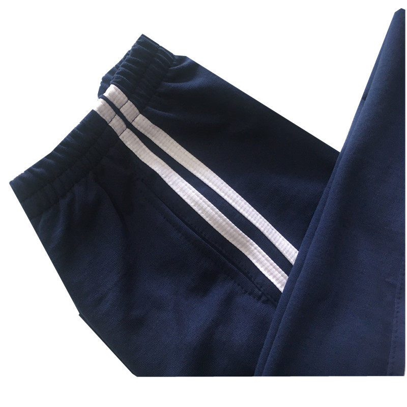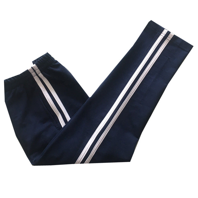 Spot spring and summer cotton black navy dark blue 2 white strip trousers with the same paragraph men's and women's sports student pants