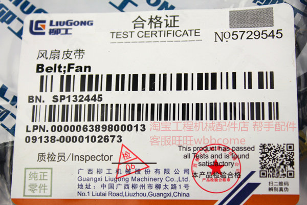 Liugong loader engine fan belt 8PK1350 10PK1334 SP132324 Liugong