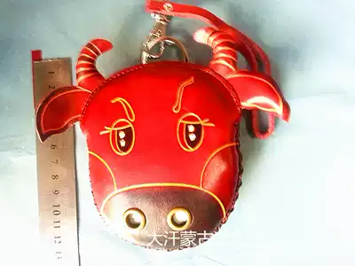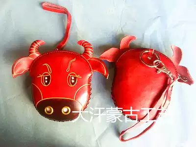 Mongolian cow head small bag craft gift decoration cowhide coin bag key bag card bag U disk bag hand
