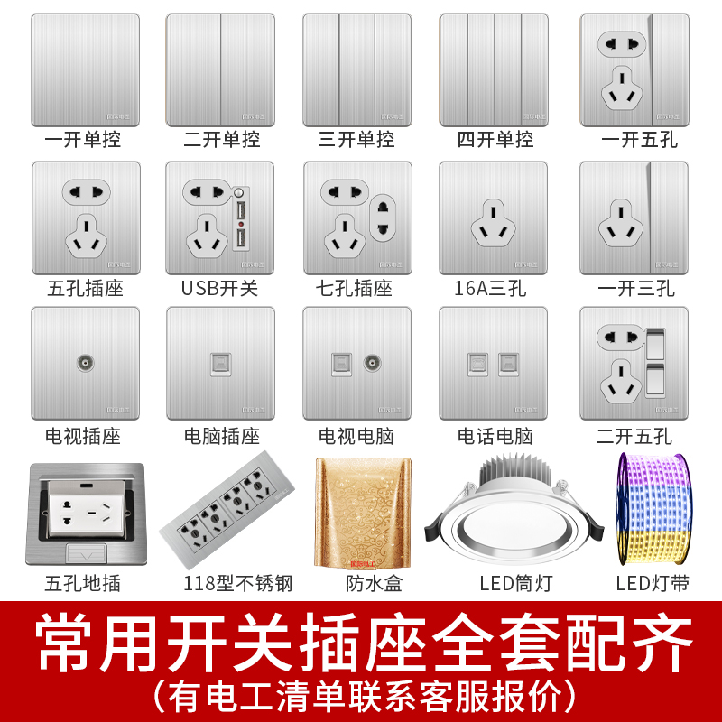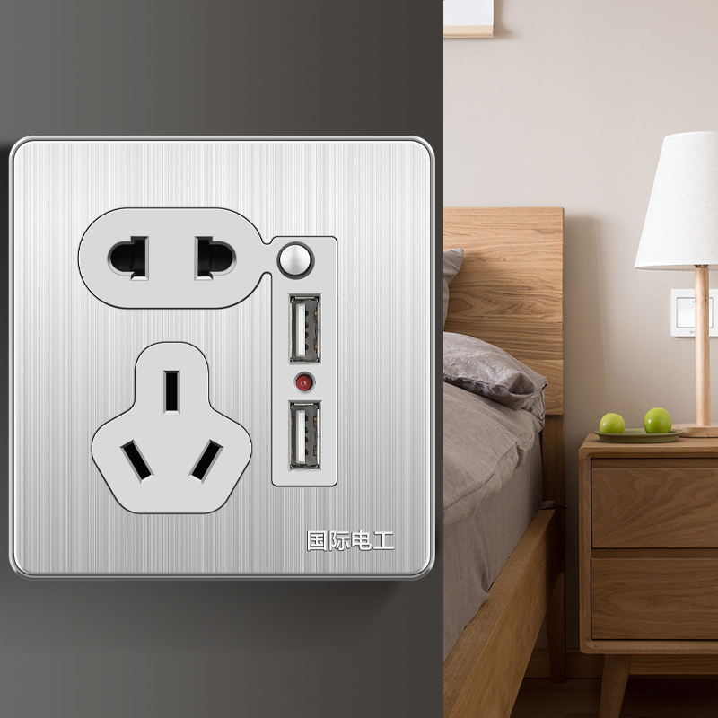 International electrical socket panel 86 type dual USB five holes 5 holes with switching power supply charging conversion multi-port wall plug