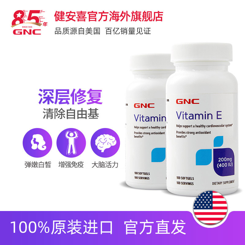 GNC Jiananxi US imported Vitamin E softgels 400IU100 2 bottles of beauty vitamins