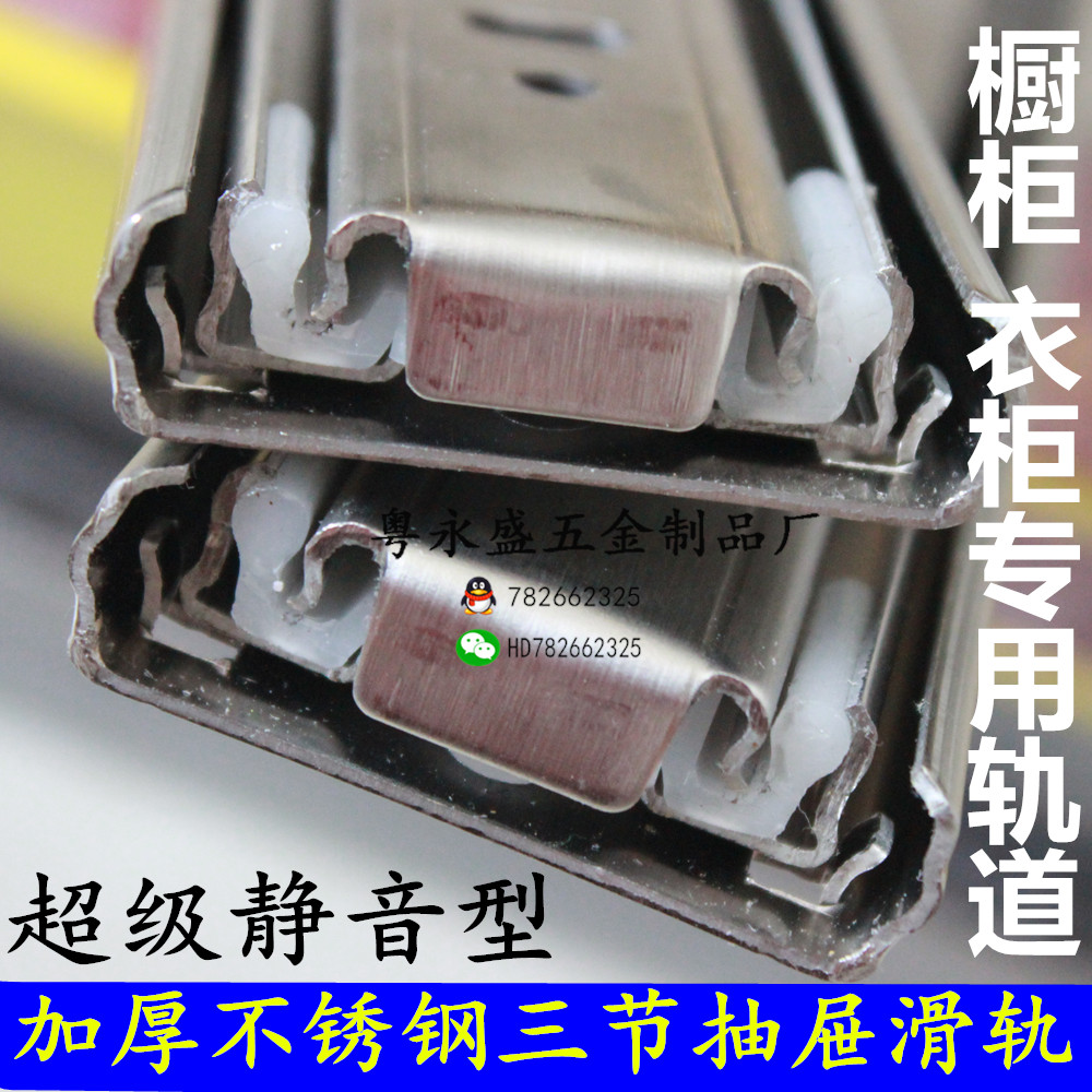 16 16-inch 40cm mute stainless steel three-section rail integral cabinet wardrobe drawers Ball slide rail drawer rail slide