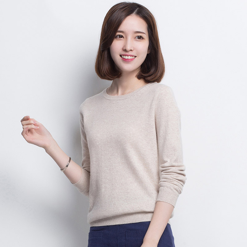 Hengyuanxiang cashmere sweater women's pure cashmere solid color knitted sweater 100% round neck bottoming sweater women's autumn pullover women's clothing