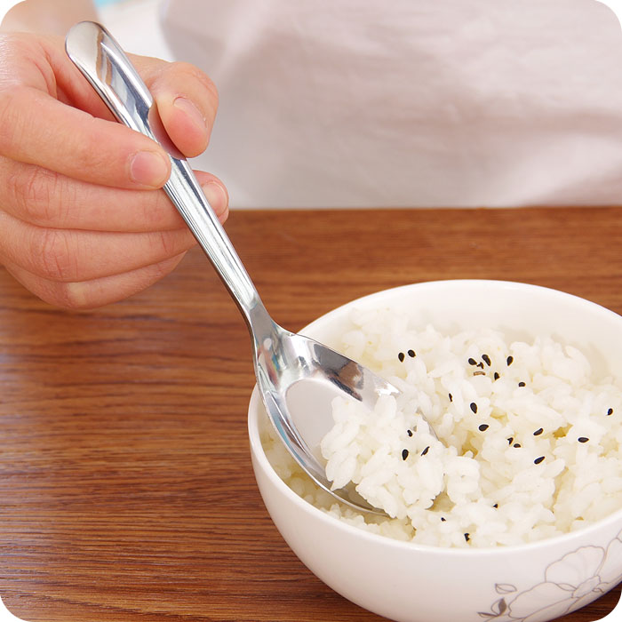 Thickened stainless steel spoon Long handle soup spoon Household meal spoon Portable tableware Children's meal spoon Flat spoon spoon