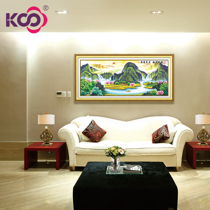 KS Cross embroidered 2021 new large living room line embroidered Egyptian cotton feng shui paintings Wealth Rolling gold Golden Poly Basin