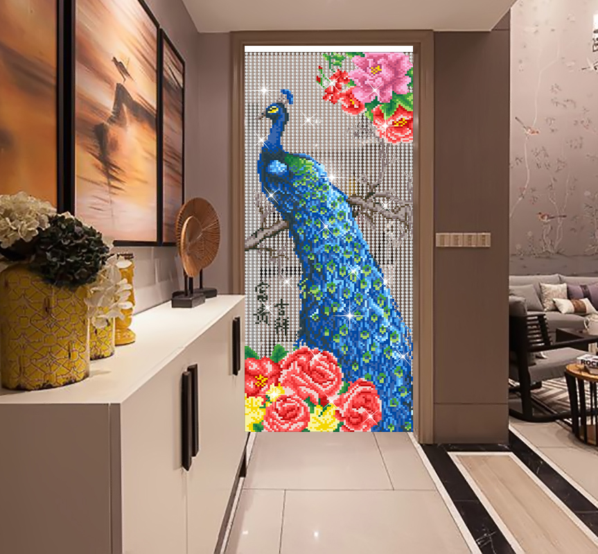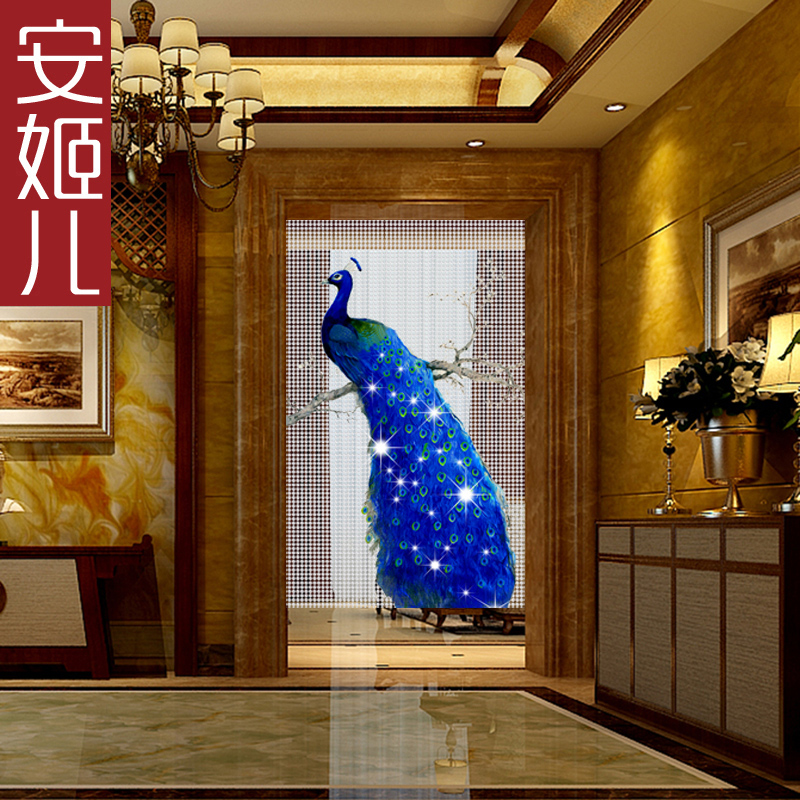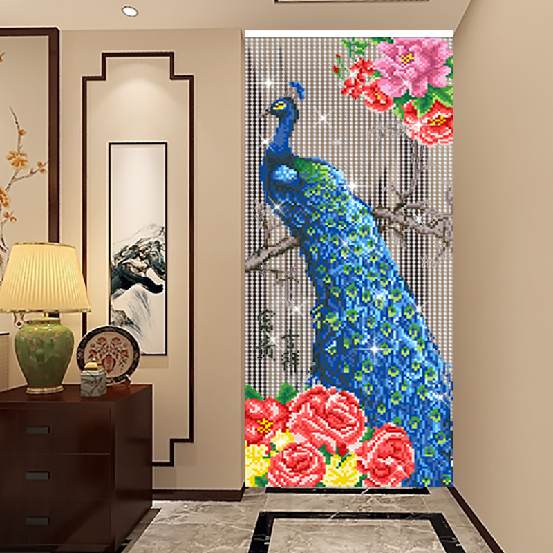 Angel painting curtain auspicious peacock crystal door curtain custom creative handmade beaded beaded curtain low price living room bathroom