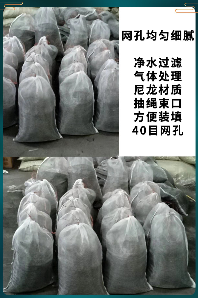 INDUSTRIAL ACTIVE CARBON GRAIN BULK COLUMNAR 25kg MESH POCKET MESH BAG NYLON BAG ROPE BUNCHING ACTIVATED CARBON FILLED WITH MESH BAG -TAOBAO