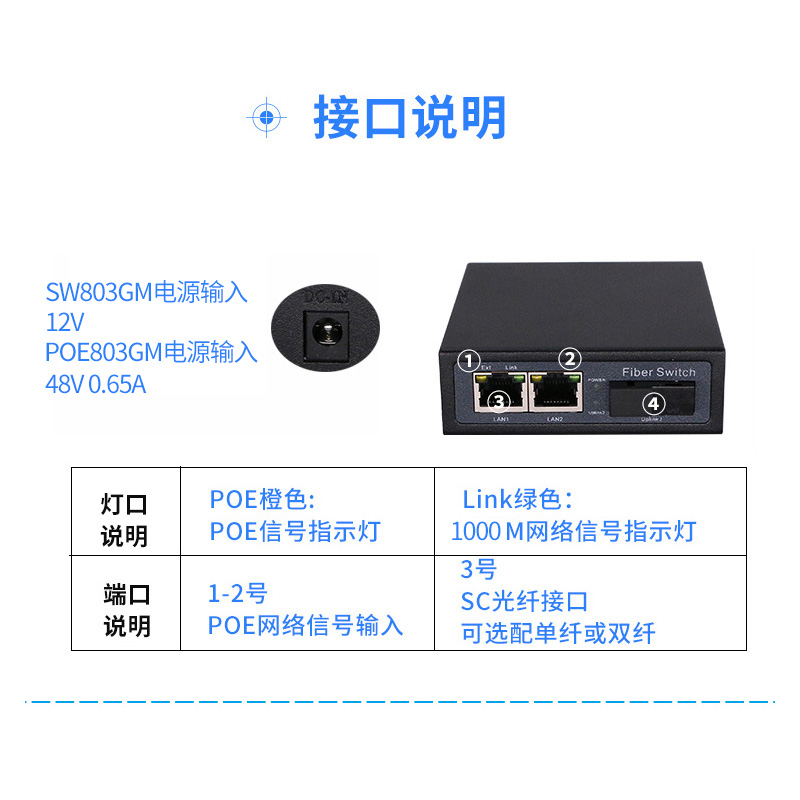 Full one thousand trillion 1 light 2 electric fiber switch 1 light 2 electric switch one thousand trillion fiber transceiver single fiber SW803GM