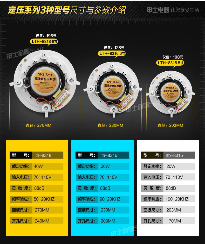 SNSIR Shenshi L831 background music ceiling speaker coaxial constant pressure ceiling ceiling audio constant resistance speaker
