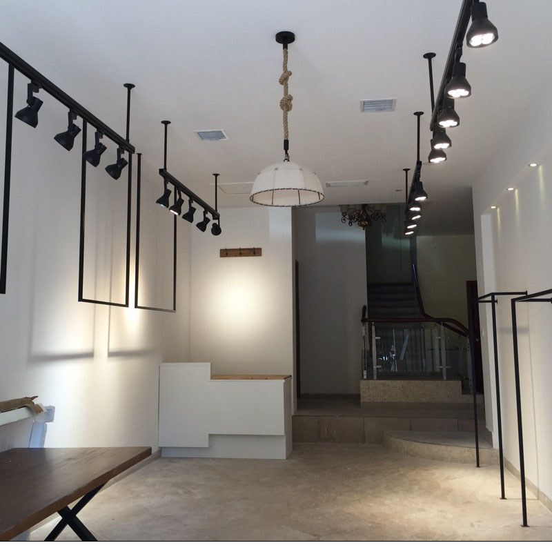 LED clothing store exhibition hall spot light boom bridge track Creative personality industrial wind thickened long pole shelf