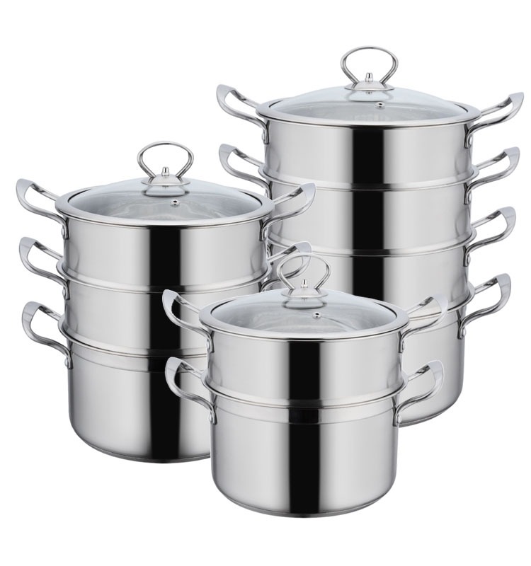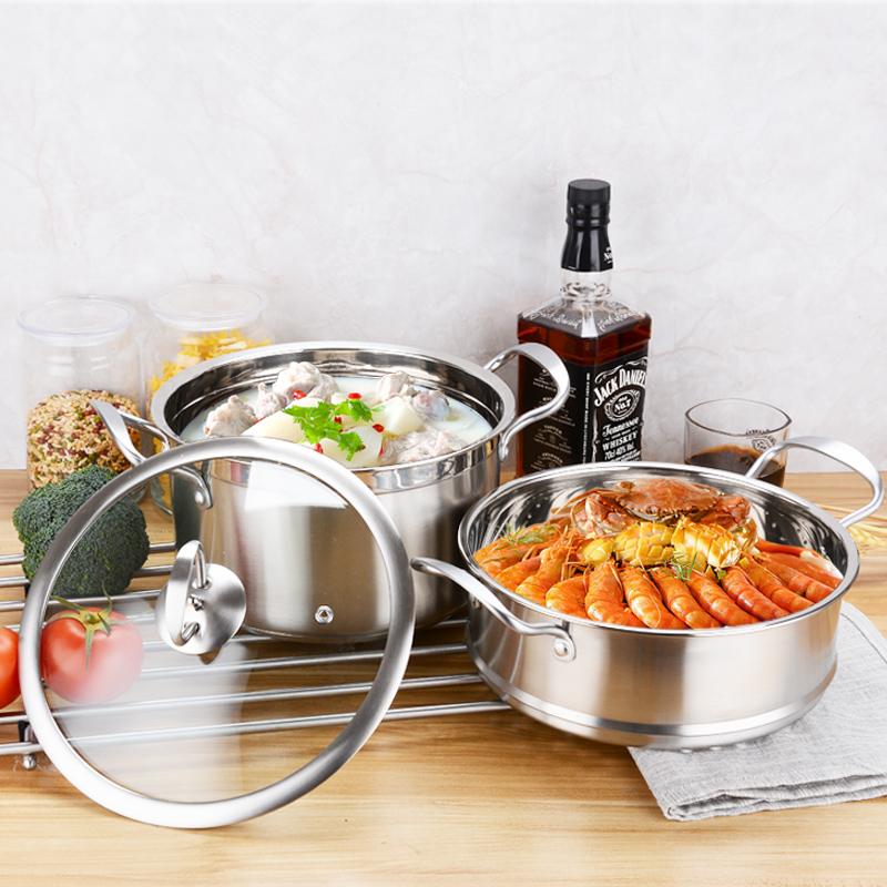 Extra-thick stainless steel steamer household soup pot single-layer small cooking pot gas induction cooker general 2 double layers two or three layers